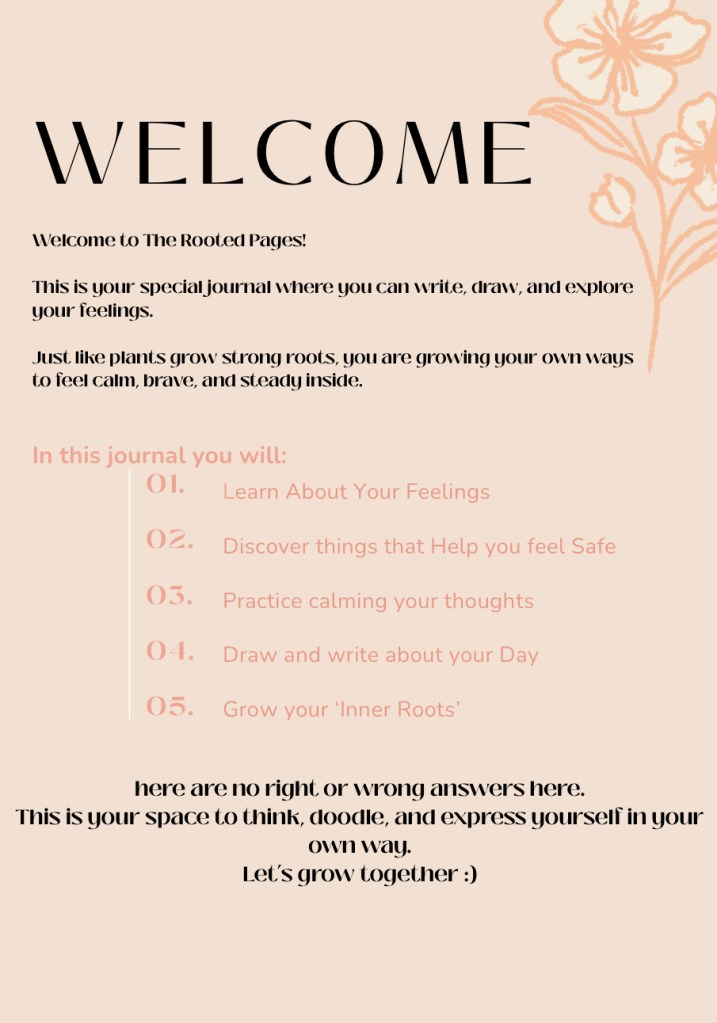 The purpose of Petal Pages is simple: to help young people understand themselves better, and to help the adults in their lives understand them too. Through reflection, guidance, and thoughtful conversations, these journals aim to make mental health support more approachable — both inside and outside our workshops.