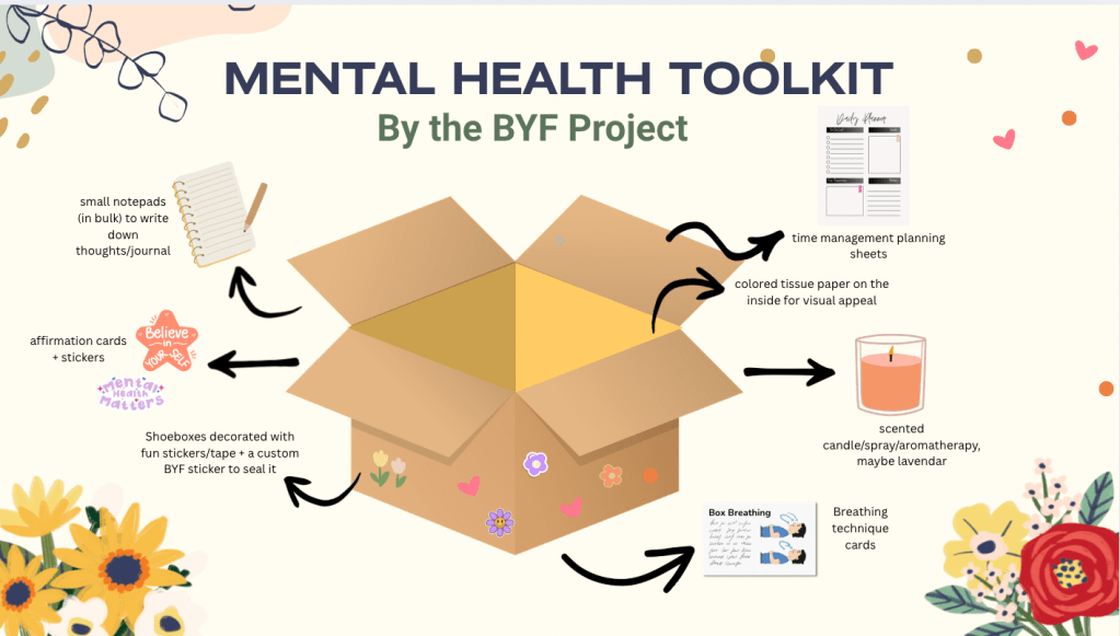 Recently, our US chapter launched the BYF Mental Health Toolkit also known “The Bloom Box,” a self-care box designed to help students manage stress, build confidence, and support their mental well-being. Packed with journaling tools, affirmation cards, planning sheets, breathing exercises, and calming aromatherapy, this toolkit gives teens easy, practical ways to cope with anxiety, digital bullying, and everyday overwhelm.